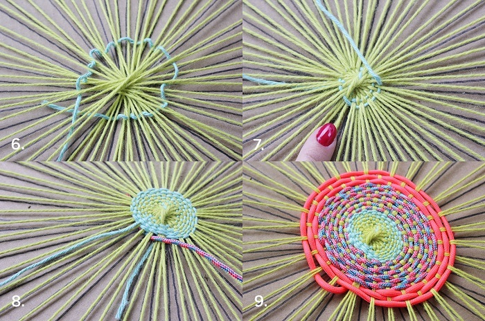 Виконується виріб технікою ручного ткацтва. Крупне плетіння легкого виконання. Такий процес захоплює всіх.
